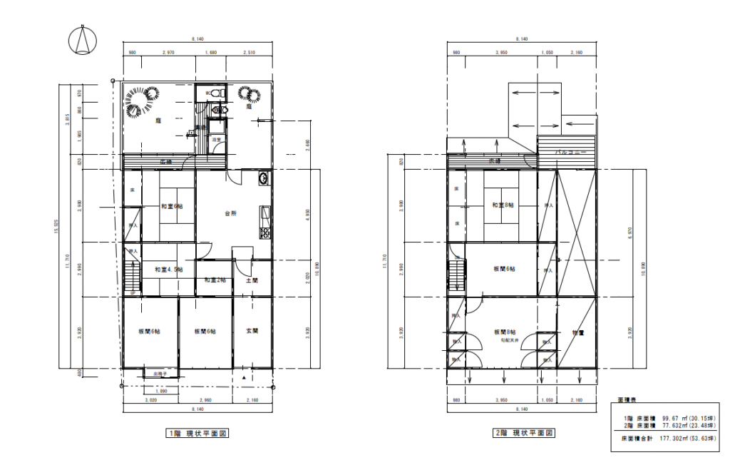 床面積1階99.67㎡ 2階77.632㎡ 合計177.32㎡(約53.63坪)