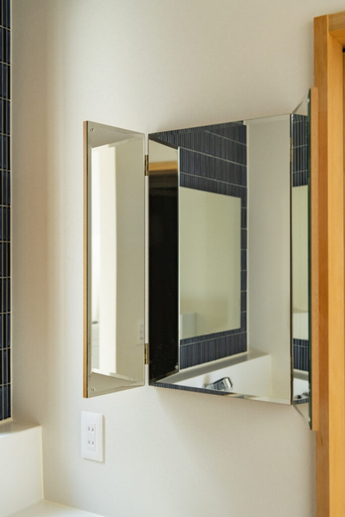鏡の後ろの間接照明がこだわりのモザイクタイルを引き立ててくれます。